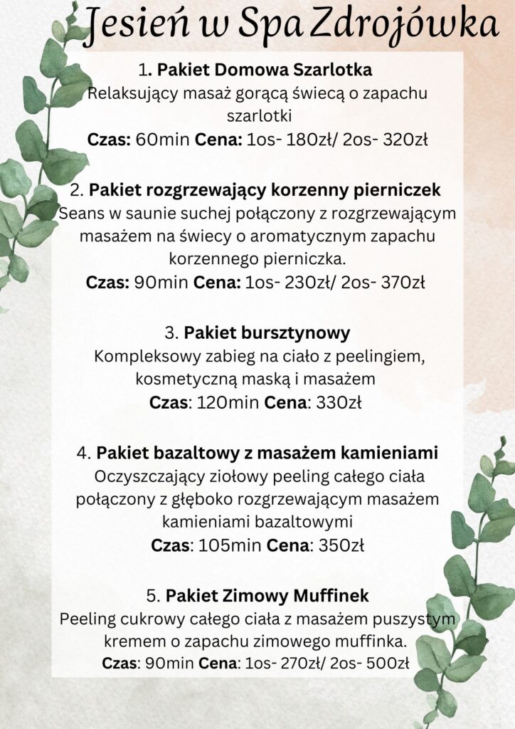 Przychodzimy z idealnym rozwiązaniem na rozwianie jesiennej aury. Oferujemy pakiety rozgrzewających zabiegów, które otulają przyjemnymi korzennymi aromatami i zapewniają głębokie rozgrzanie ciała.