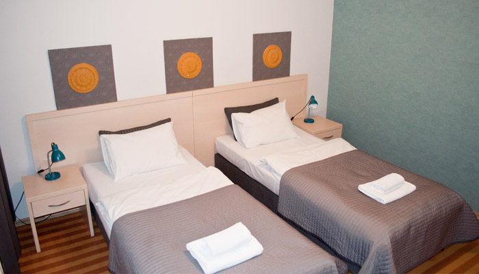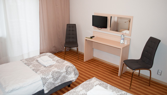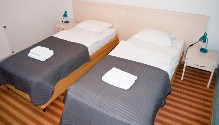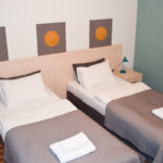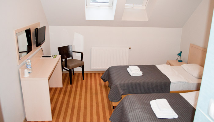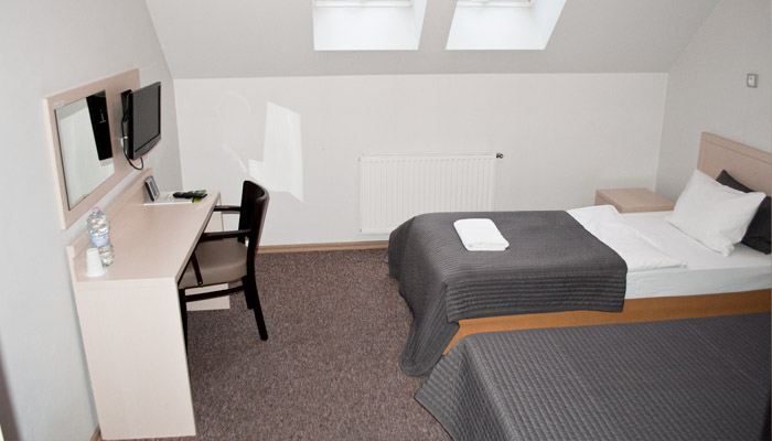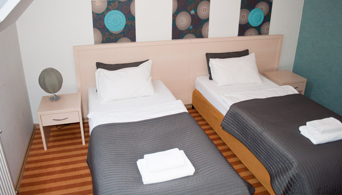 Pokój dwuosobowy. Dwa łóżka pojedyncze z możliwością ich połączenia. Posiada łazienkę z prysznicem, okna od strony spokojnej ulicy, płaski telewizor z pilotem, suszarkę do włosów oraz bezpłatne Wifi.